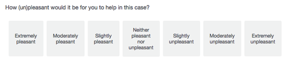 The more a scenario is perceived as unpleasant, the less likely the participant is to help in that scenario.