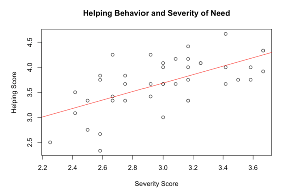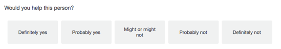 The more severely a person or group is perceived as needing help, the more likely the participant is to help in that scenario.